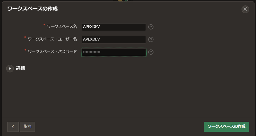2. APEXのワークスペースの作成