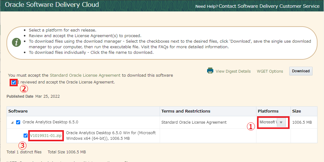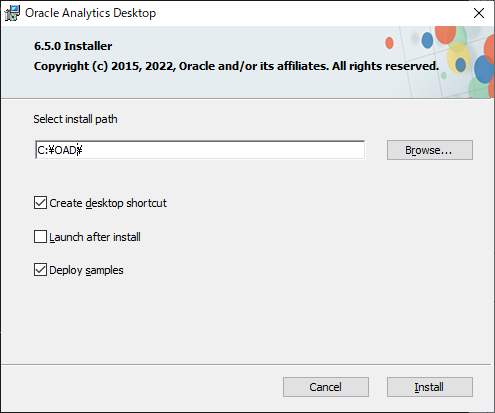 Oracle Analytics Desktop (OAD) をダウンロードします。
