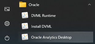 Windowsスタートメニューから、Oracle > Oracle Analytics Desktop をクリックし、Oracle Analytics Desktop を起動します。