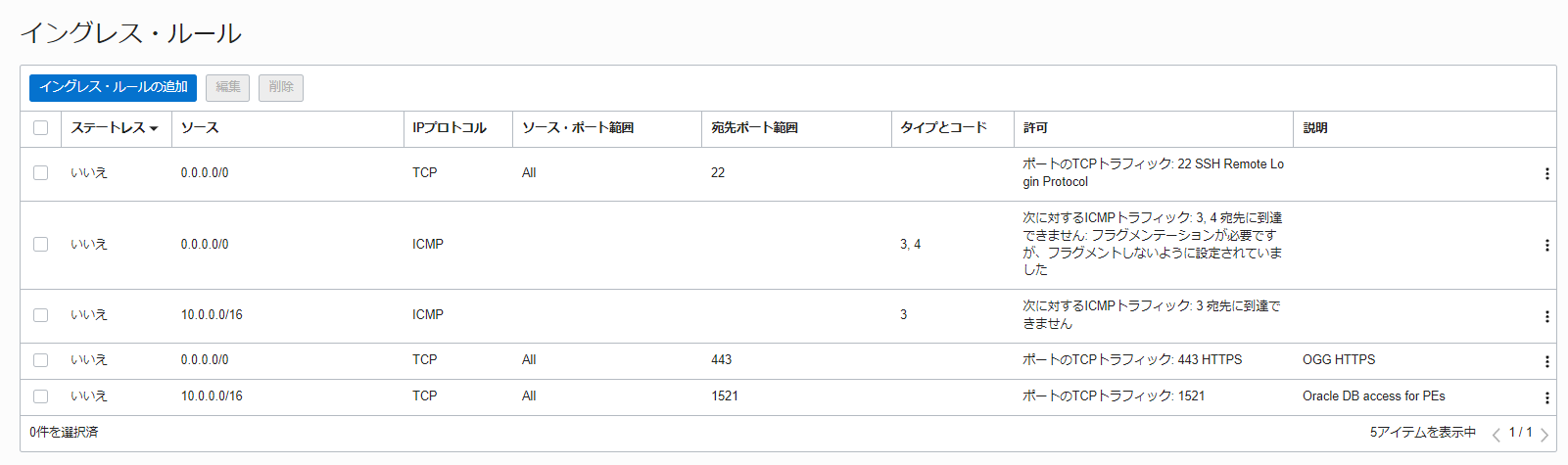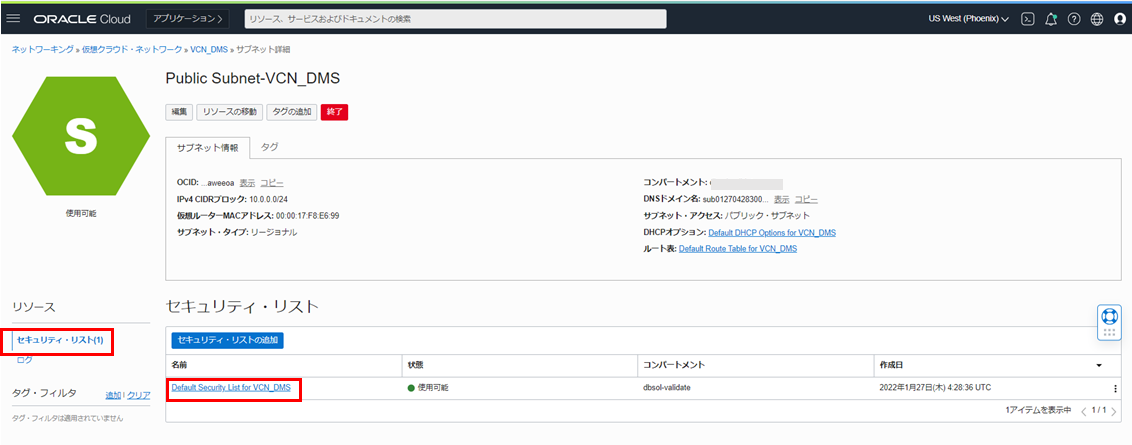 1-1. 仮想クラウド・ネットワーク・サブネットのセキュリティ・リストの更新