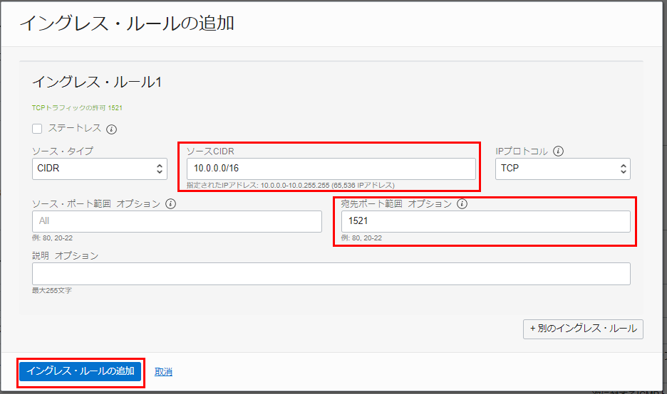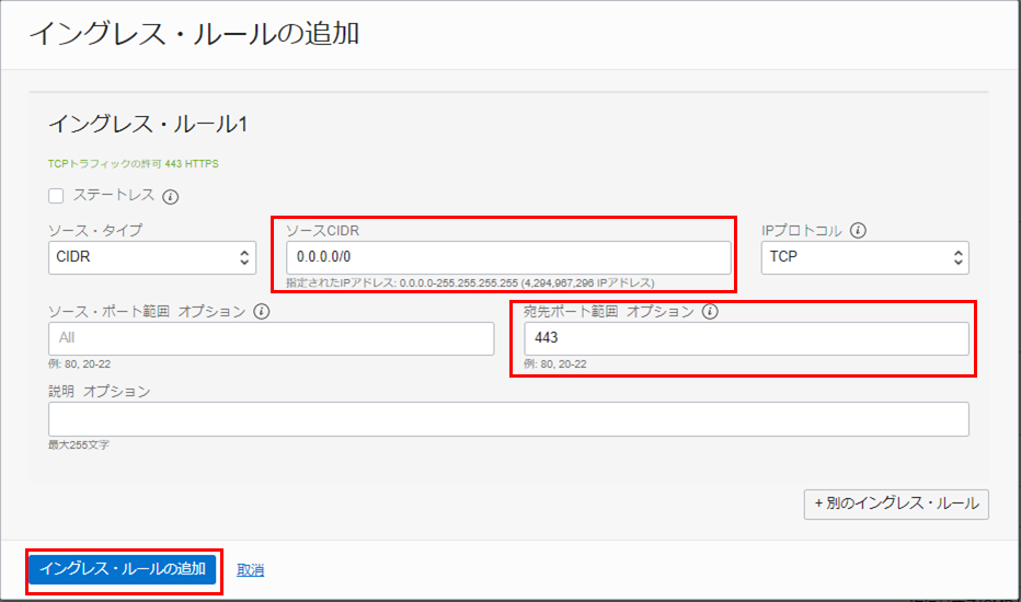 • イングレス・ルールの追加 をクリックします。