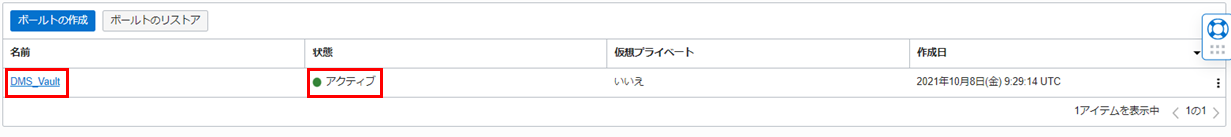 6. 作成したボールトの状態が アクティブ になるまで待ちます。(5分ほどかかります。)