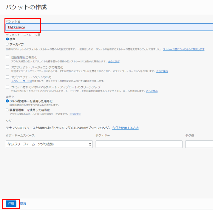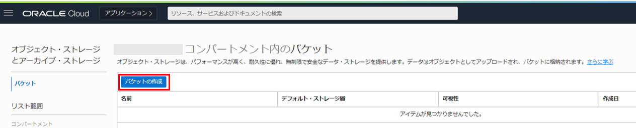 1-3. オブジェクト・ストレージ・バケットの作成