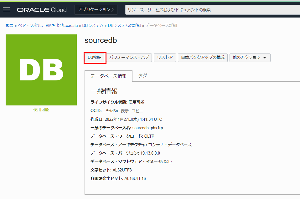 12. DBシステムの詳細 をクリックします。