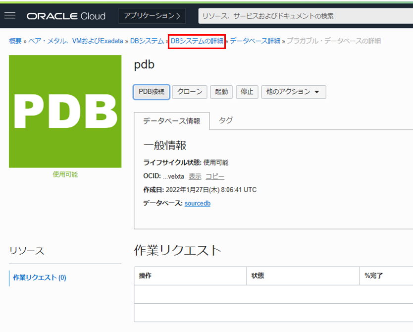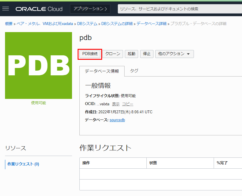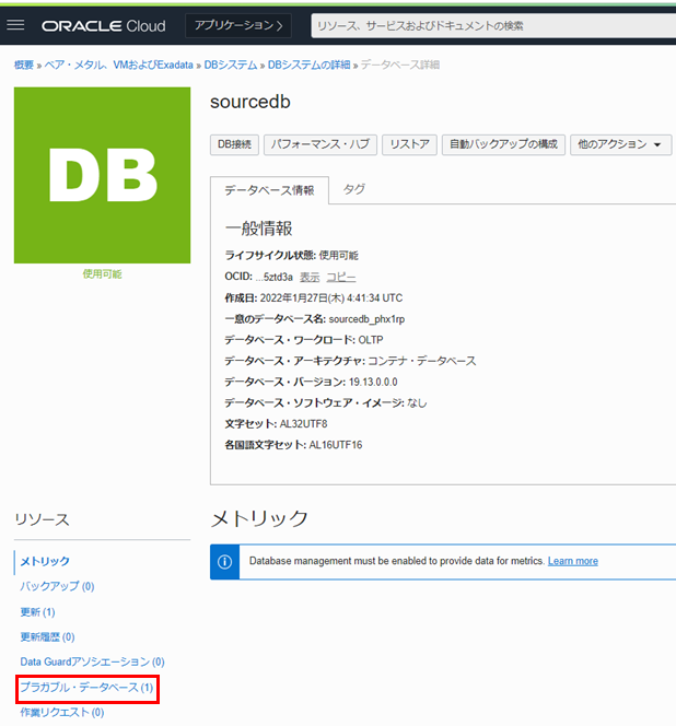 7. リソース の一覧から プラガブル・データベース をクリックします。