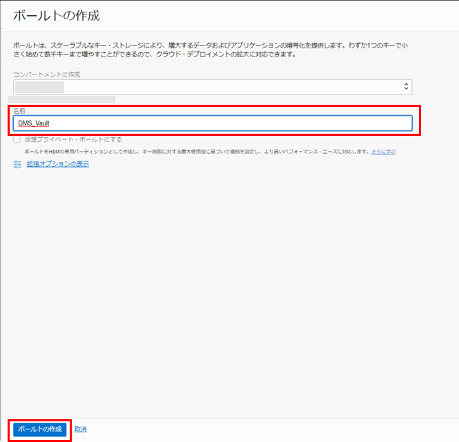 4. ボールトの作成 ダイアログで、任意の名前を入力します。