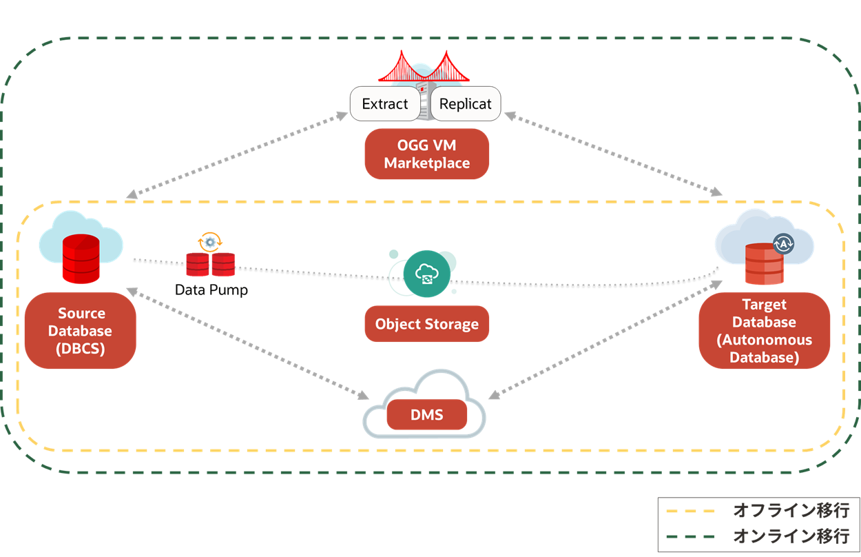 オフライン移行を実行したい場合は、305 : OCI Database Migration Serviceを使用したデータベースのオフライン移行にお進みください。 オンライン移行を実行したい場合は、306 : OCI Database Migration Serviceを使用したデータベースのオンライン移行にお進みください。