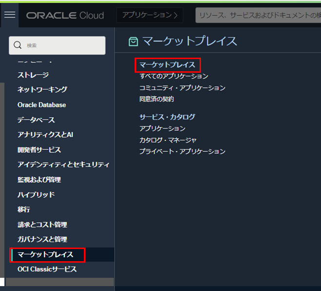 OCIコンソール・メニューから マーケットプレイス → マーケットプレイス に移動します。