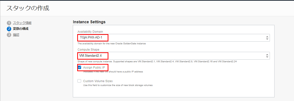 スクロールダウンし、Marketplace GoldenGateインスタンスの使用にチェックを付け、各項目を以下のように設定します。