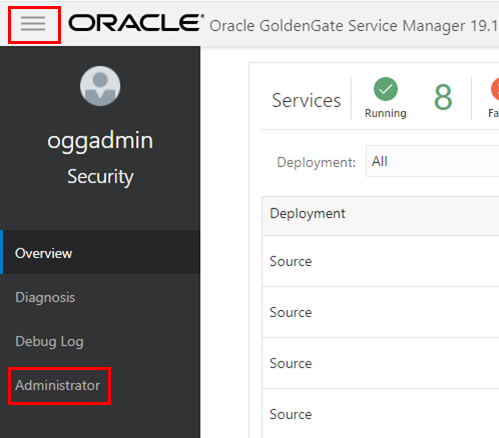 左上のハンバーガー・メニューをクリックし、Administrator をクリックします。