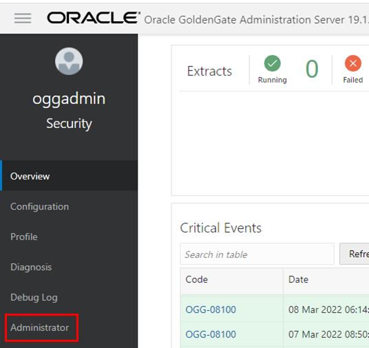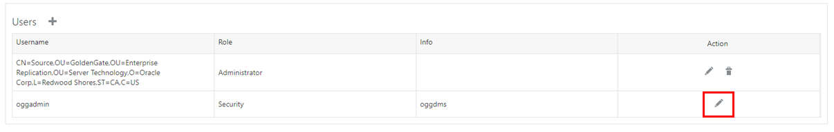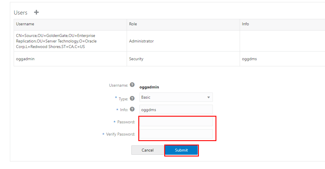- GoldenGate管理者ユーザー名 - 2. Oracle Goldengate Microservicesインスタンスの設定で設定したユーザー名(デフォルトはoggadmin)