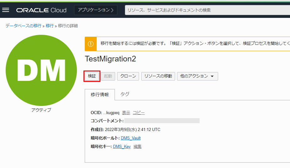 詳細については、Oracle Cloud Infrastructure Database移行サービスの使用 - 4 移行の管理 - 検証オプションの構成 をご参照ください。
