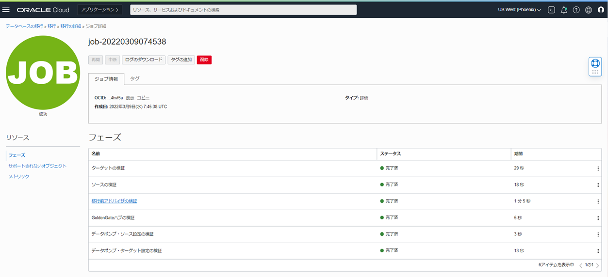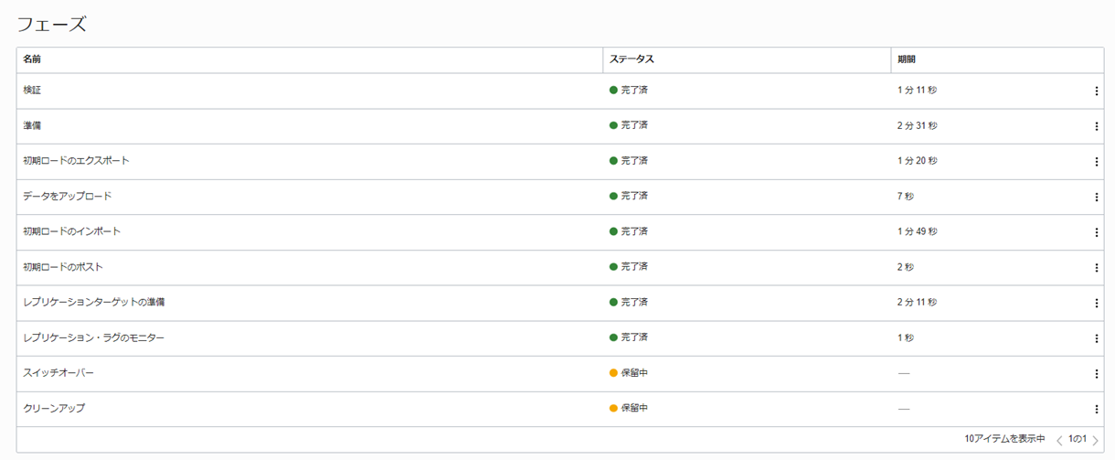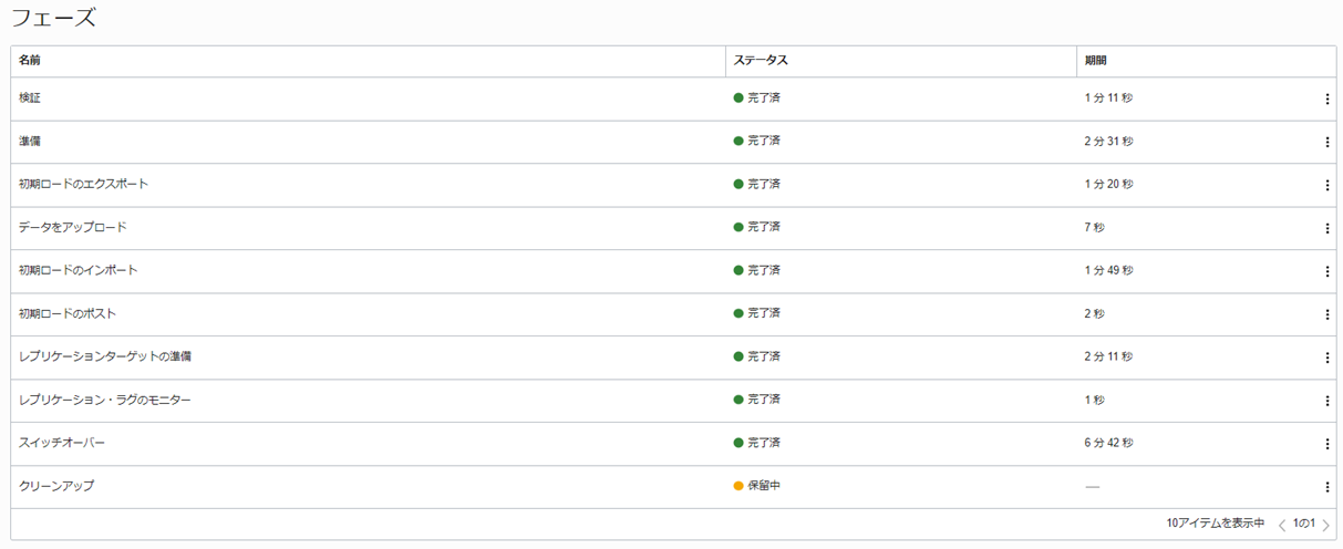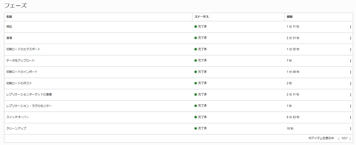 全ての フェーズ の ステータス が 完了済 と表示されたら、移行の検証は完了です。