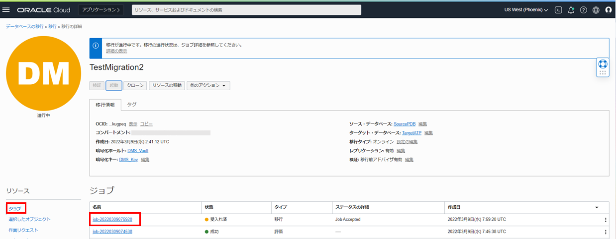 306 : OCI Database Migration Serviceを使用したデータベースのオンライン移行