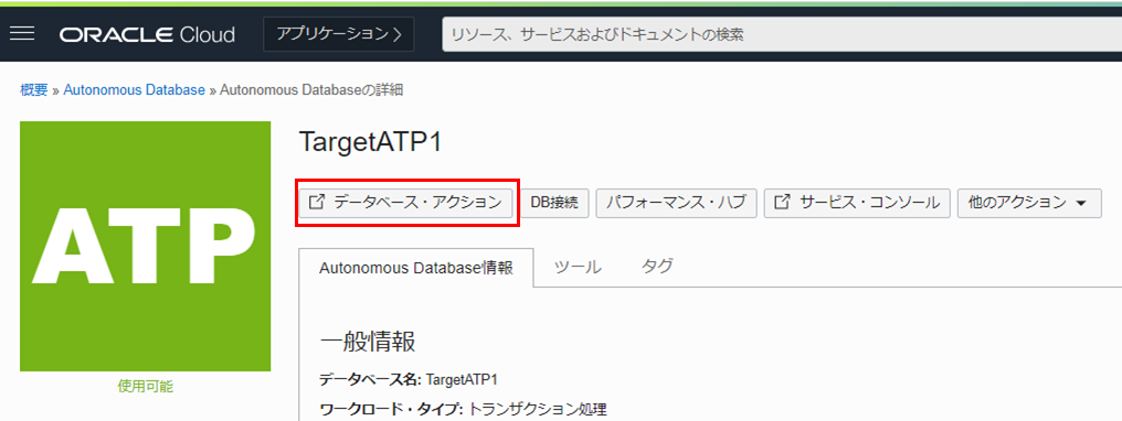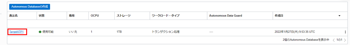 移行に使用したターゲット・データベースの表示名をクリックします。
