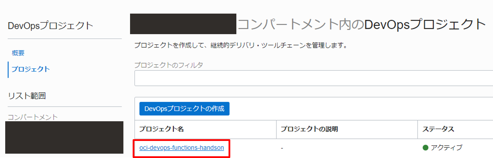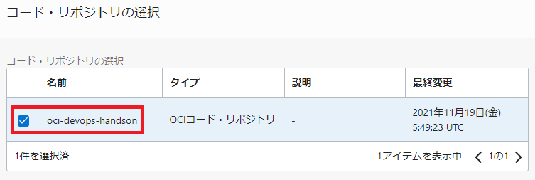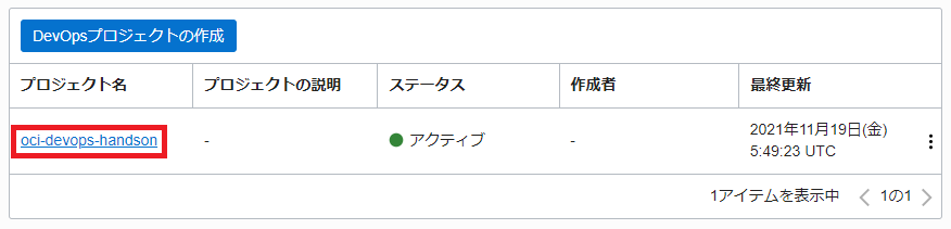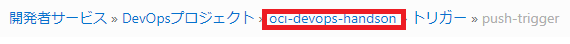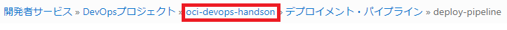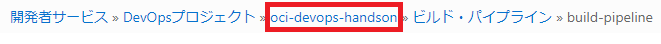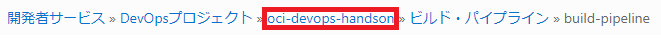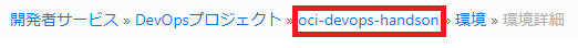 確認後、パンくずリストから「oci-devops-handson」をクリックします。
