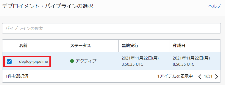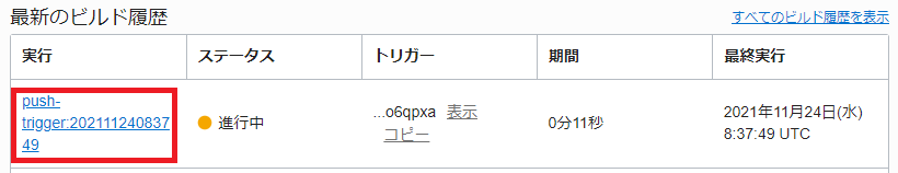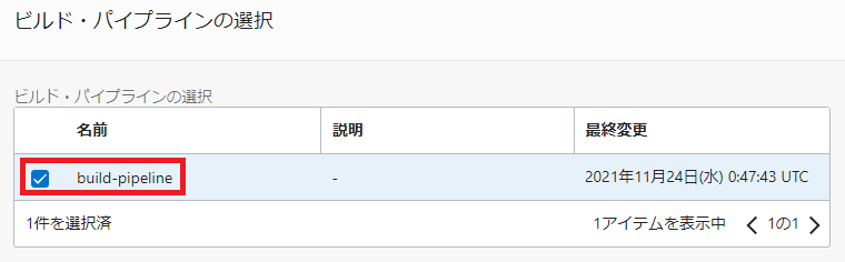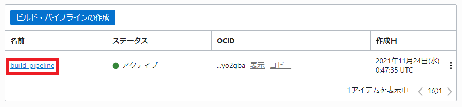 「最新のビルド履歴」で、対象のビルド・パイプラインを選択します。