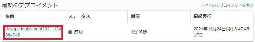 「最新のデプロイメント」で、対象のデプロイメントを選択します。