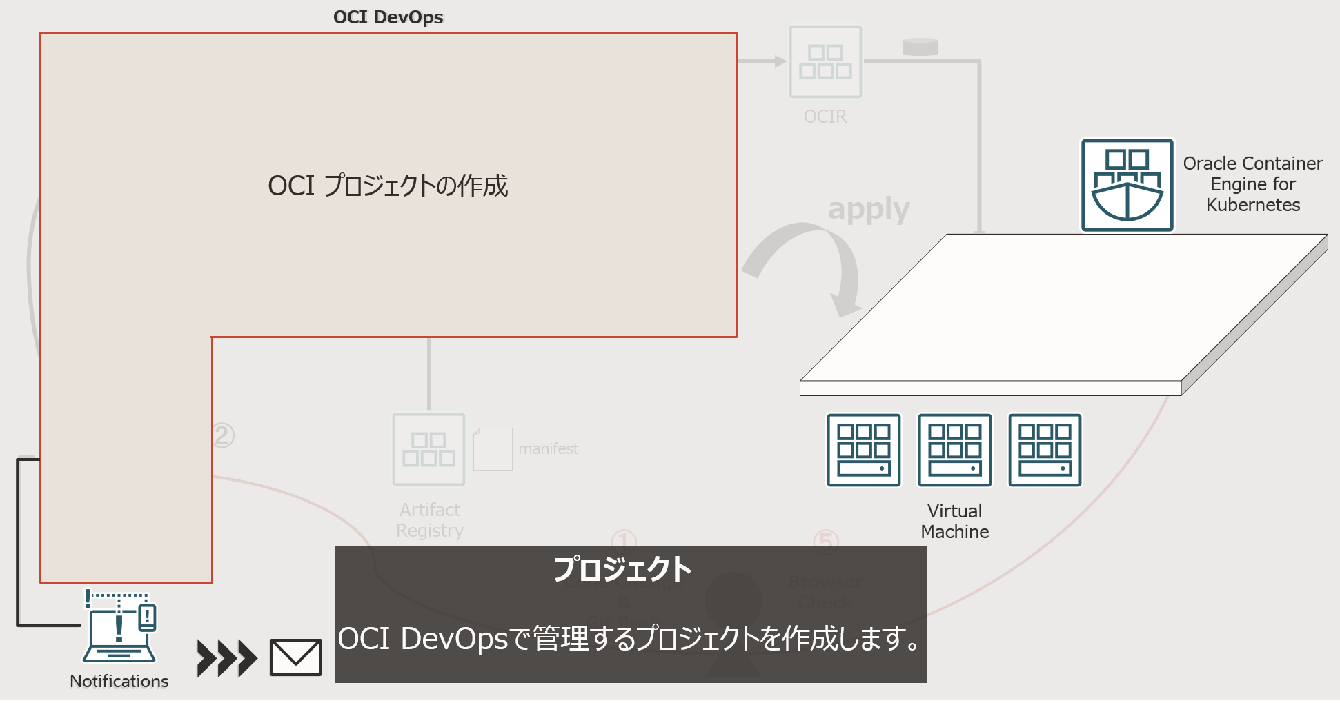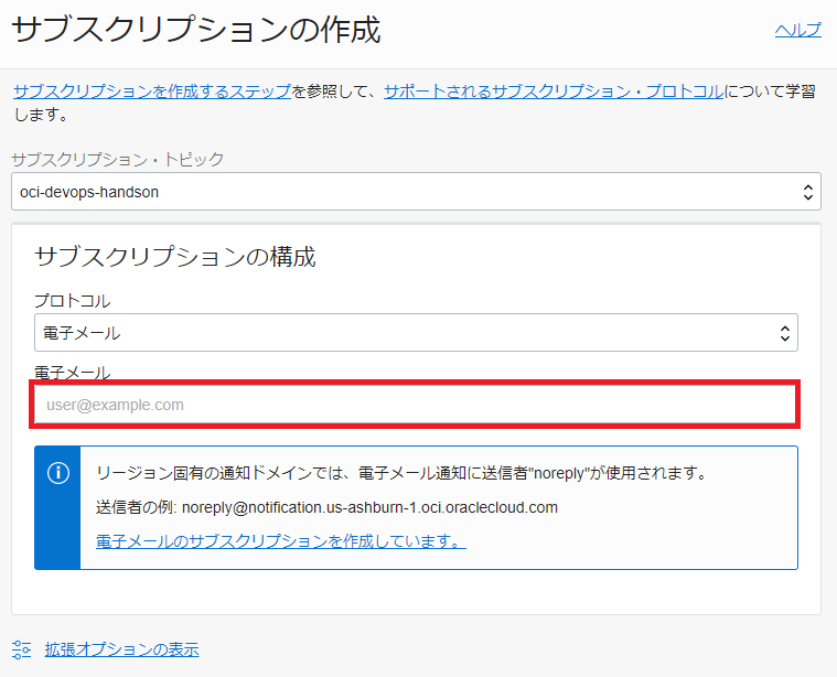 OCI DevOps では、OCI Notifications サービスの「トピック」と「サブスクリプション」の設定が必要となります。