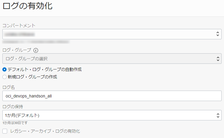 | OCI_DevOps_Dynamic_Group | All {resource.type = ‘devopsbuildpipeline’, resource.compartment.id = ‘コンパートメント OCID’} | ビルド・パイプラインを利用するために必要な動的グループ |