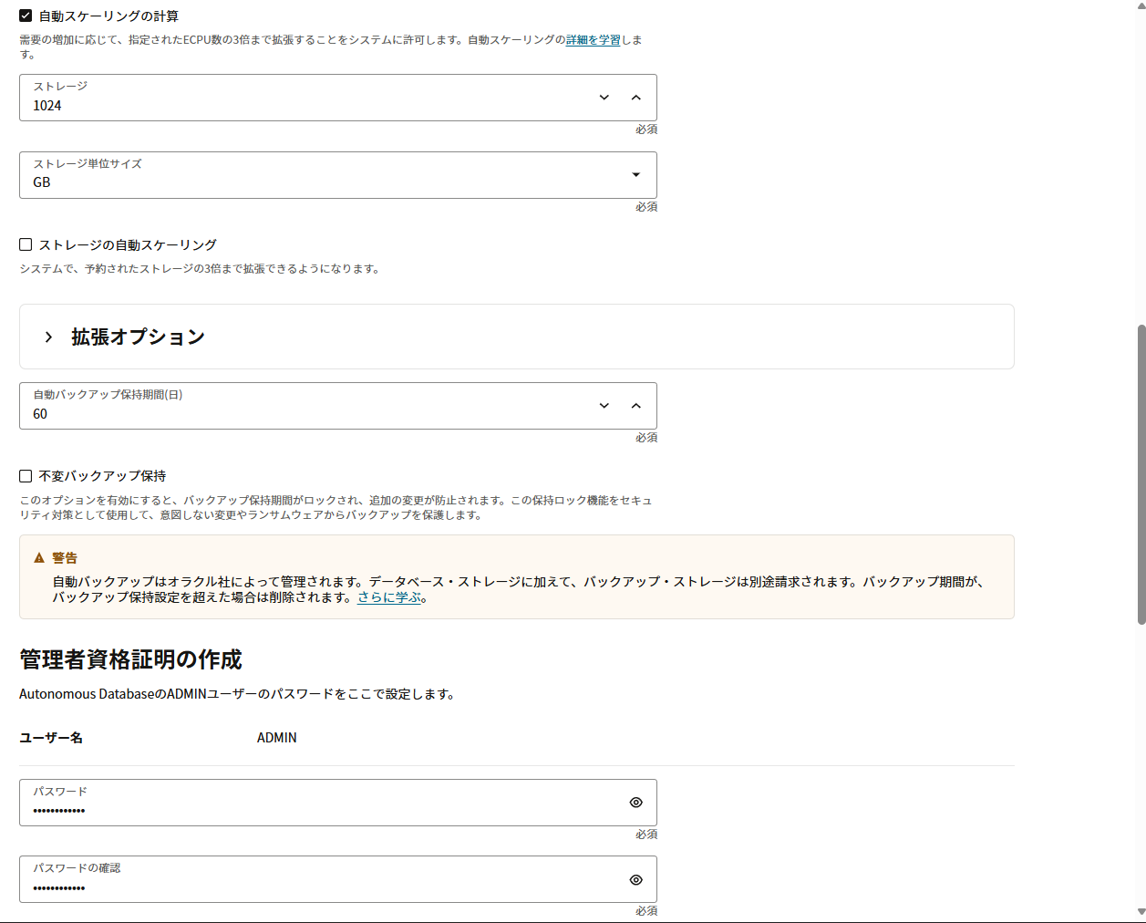 GB - ストレージの自動スケーリング:チェック・オフのまま。
