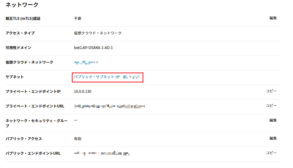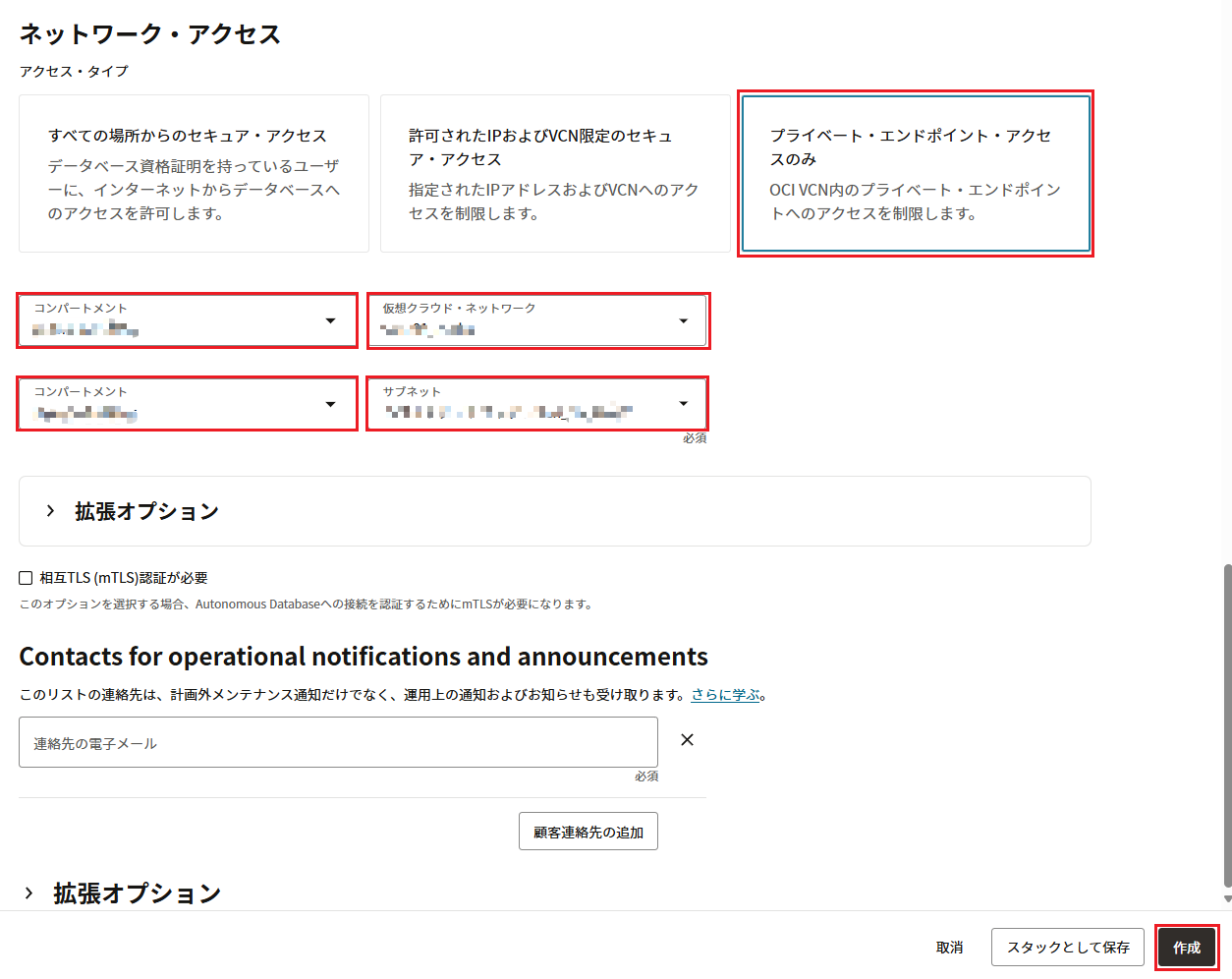 - ネットワーク・アクセスの選択:プライベート・エンドポイント・アクセスのみ