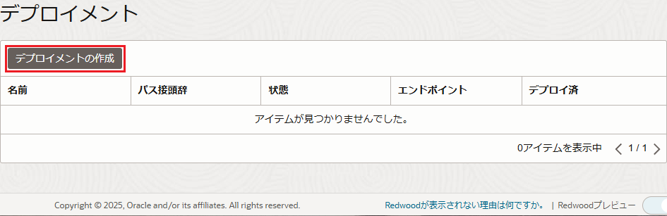 [リソース]で[デプロイメント]をクリックし、[デプロイメントの作成]をクリックします。