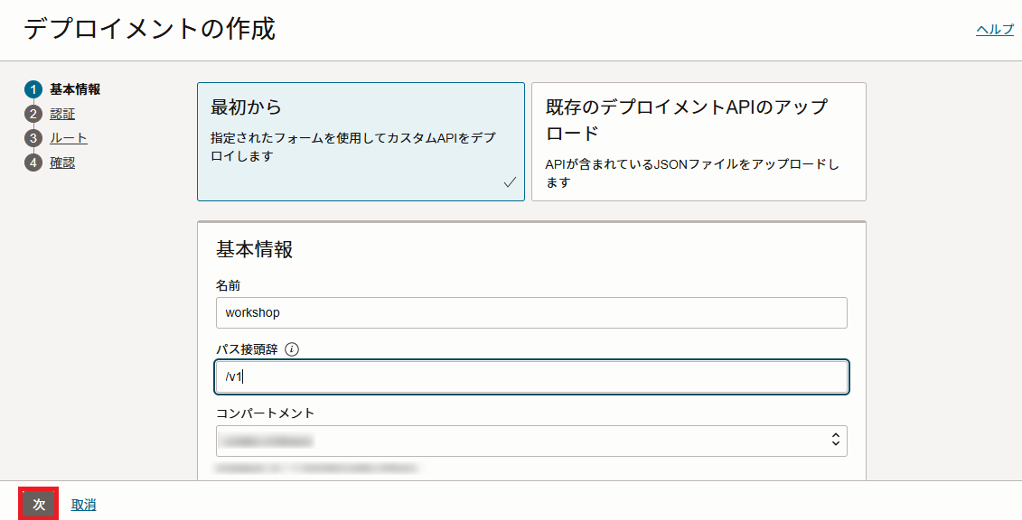 /v1 - コンパートメント:新しいAPIデプロイメントを作成するコンパートメント