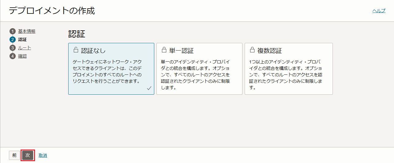 [認証]セクションで[最初から]をクリックし、「次」をクリックします。