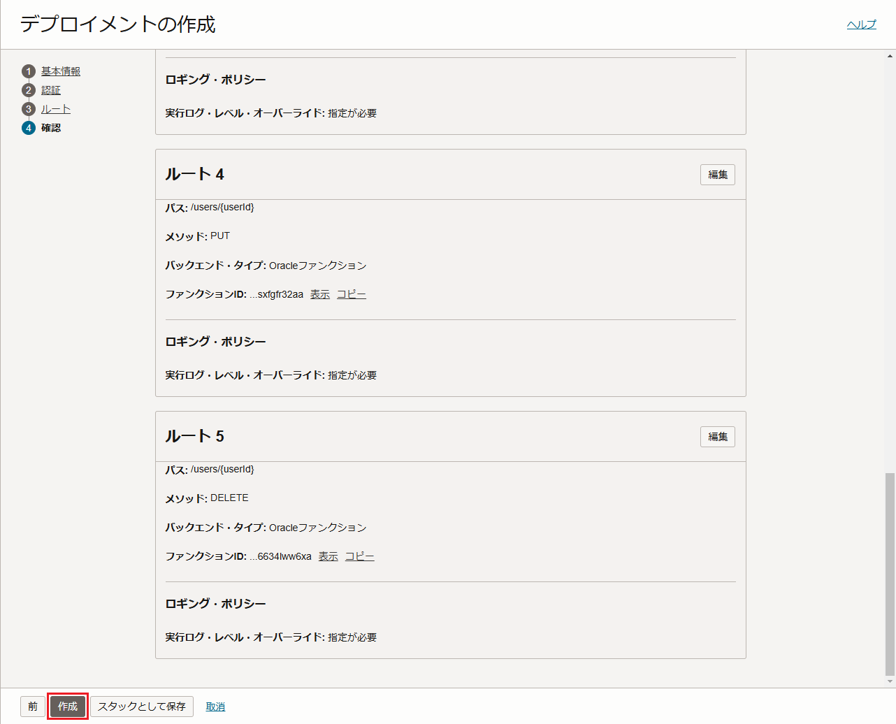 新しいAPIデプロイメント用に入力した詳細を確認し、[作成]をクリックして作成します。