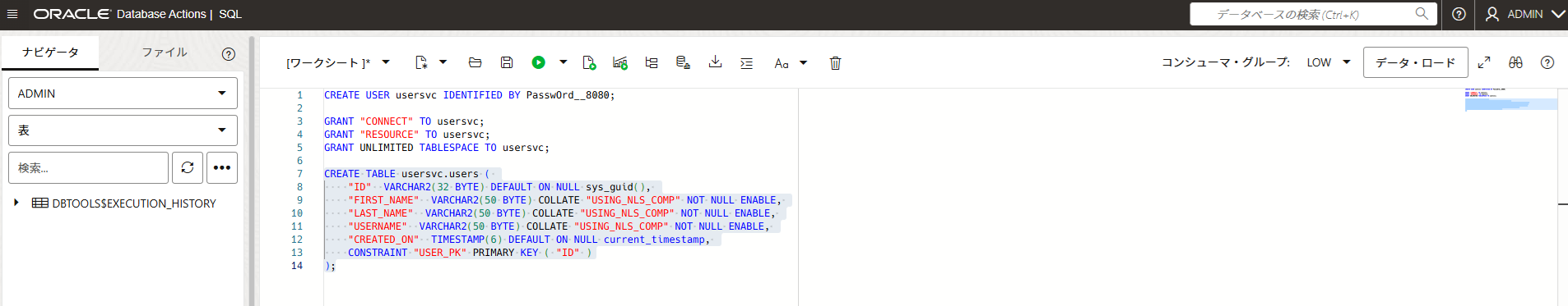 これで、ユーザーテーブルおよびサンプル・データの準備は完了です。