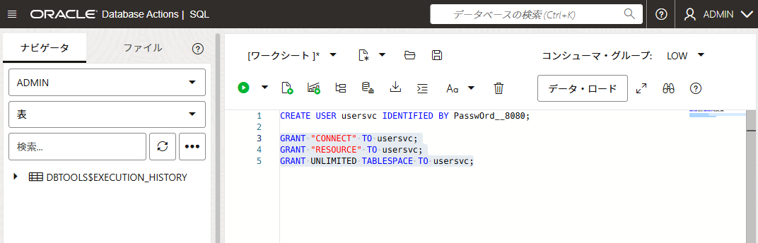 CREATE USER usersvc IDENTIFIED BY PasswOrd__8080;