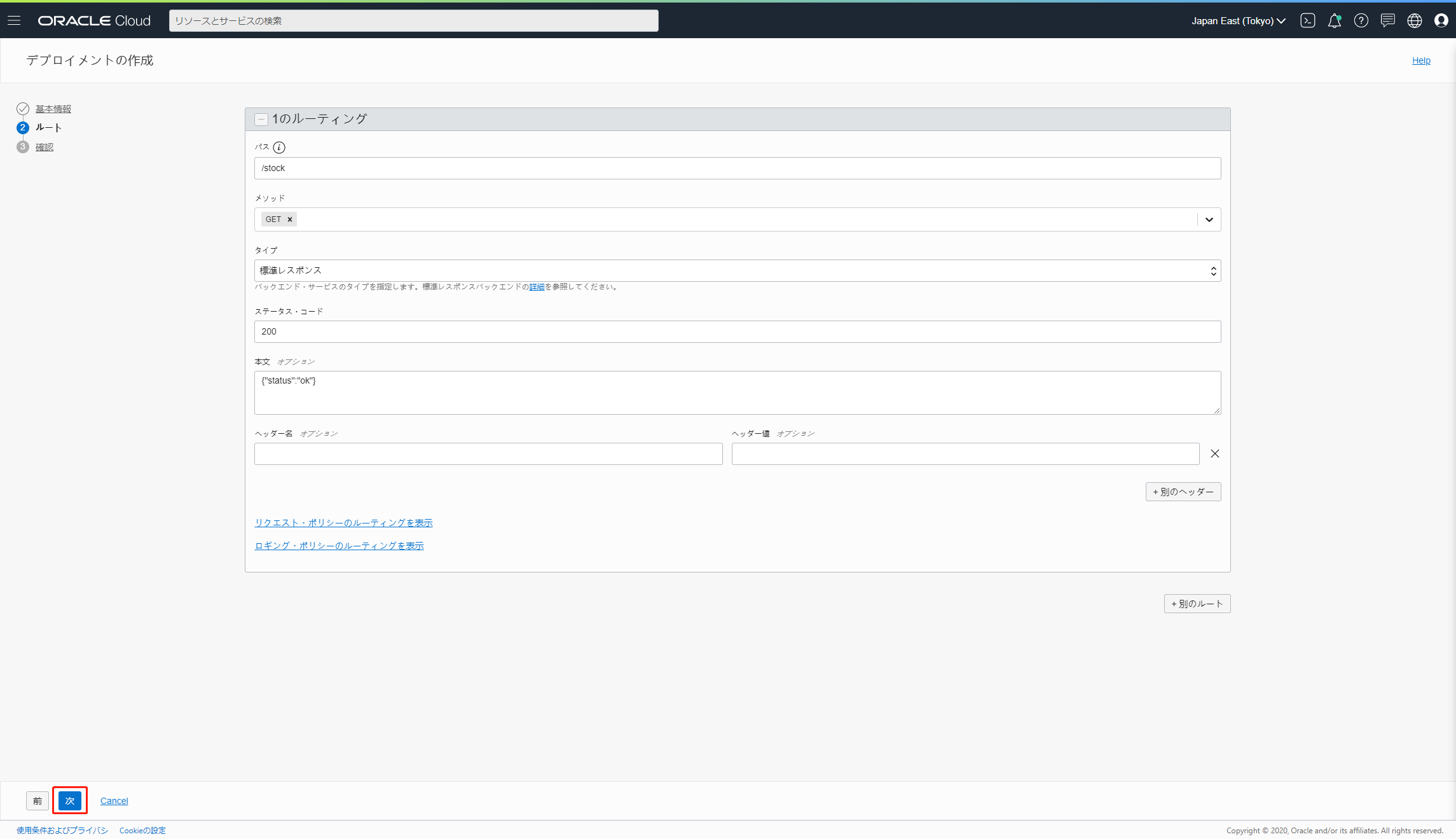 例えば、https://xxxxxxxxxxxxxx.ap-tokyo-1.oci.customer-oci.com/workshop/stockのようになります。 - type: