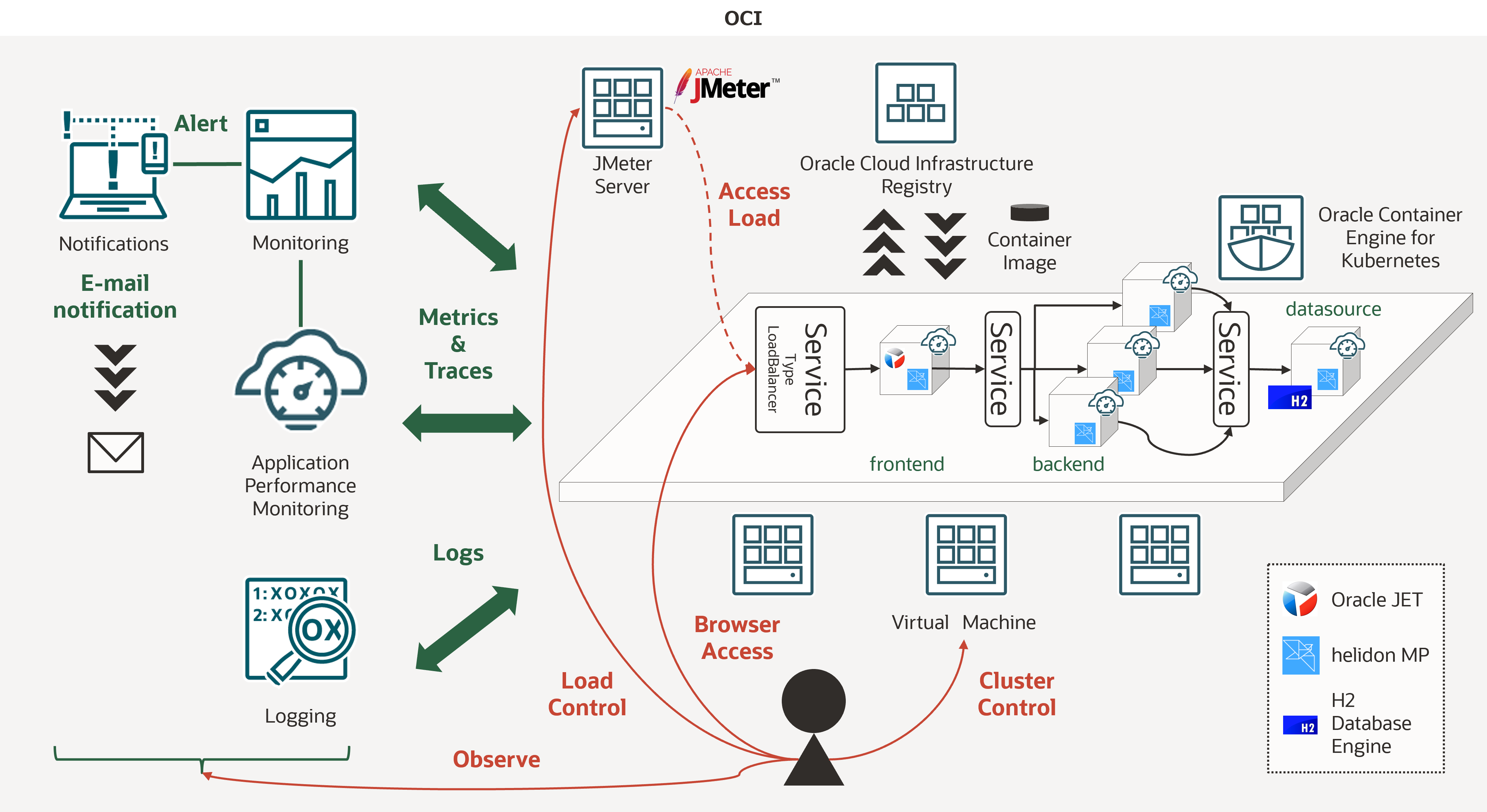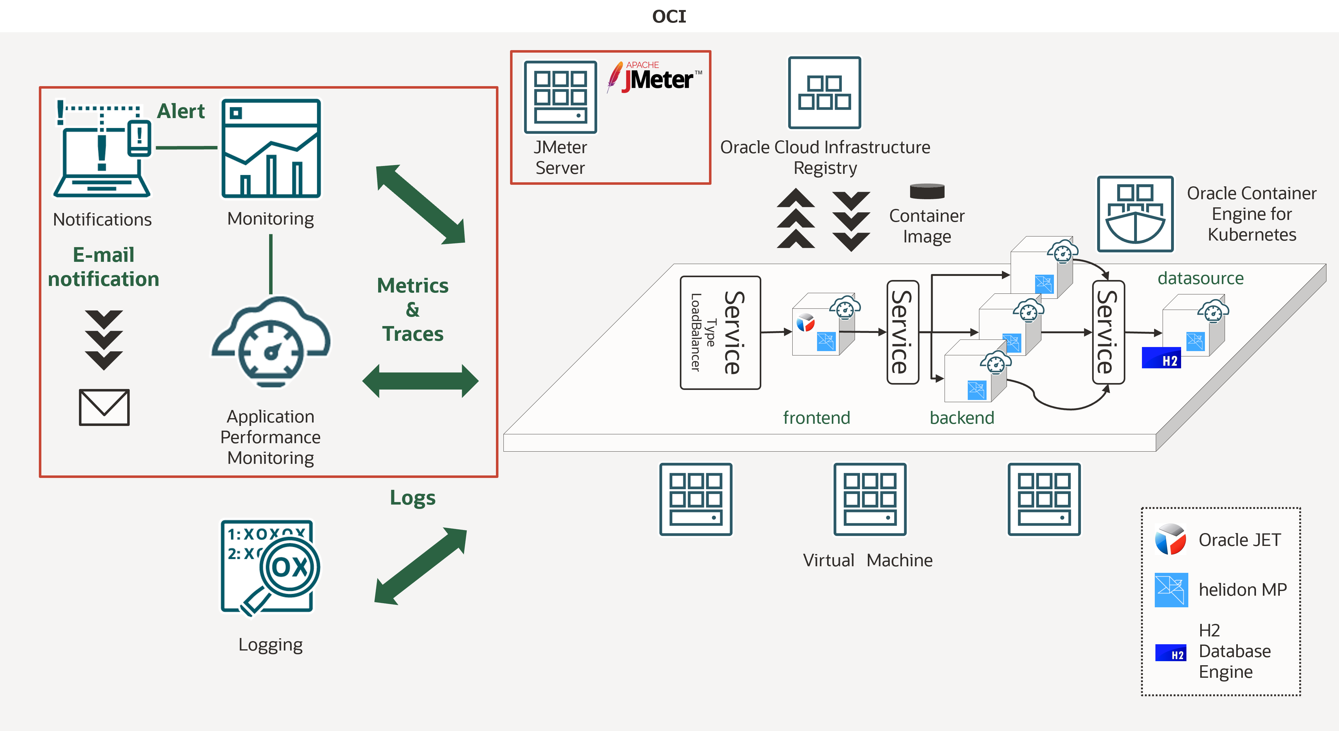 このハンズオンでは、Oracle Container Engine for Kubernetes(以下OKE)上に、マイクロサービスアプリケーションをデプロイします。そして、OCIのObservabilityサービスを利用して、モニタリング、ロギング、トレーシングを実践的に学びます。