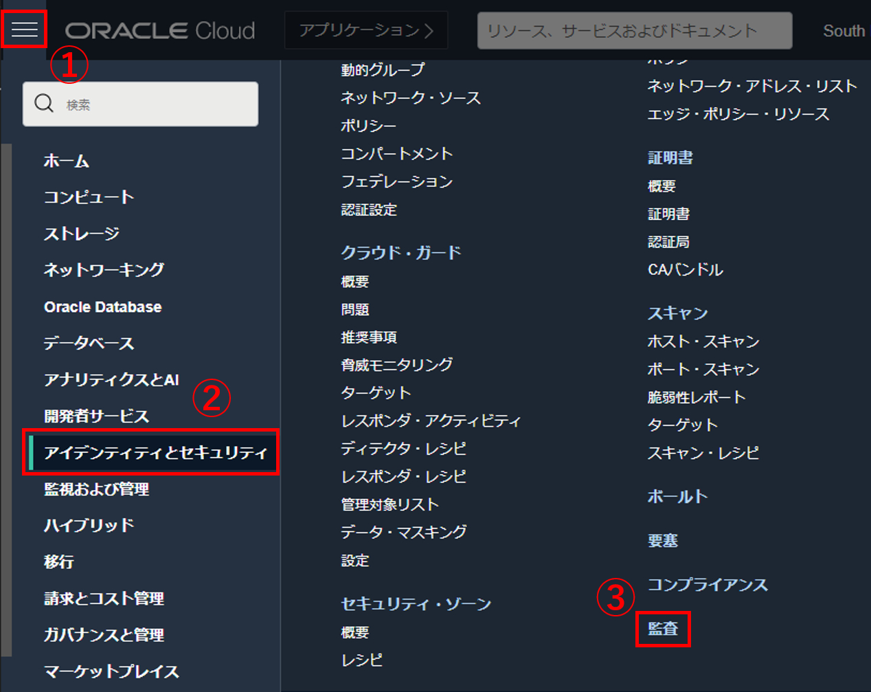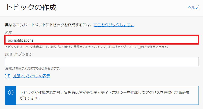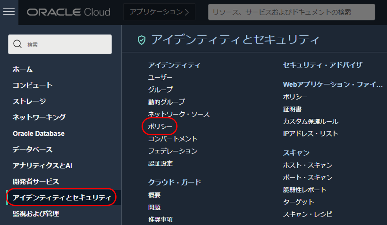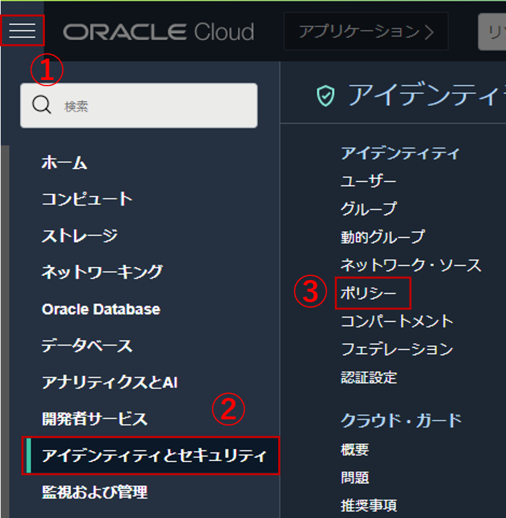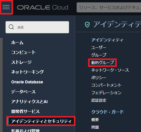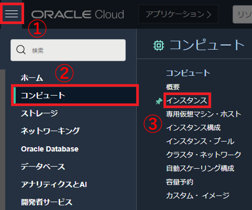 コンパートメントはOCIRのコンソール画面の左側から選択できます。