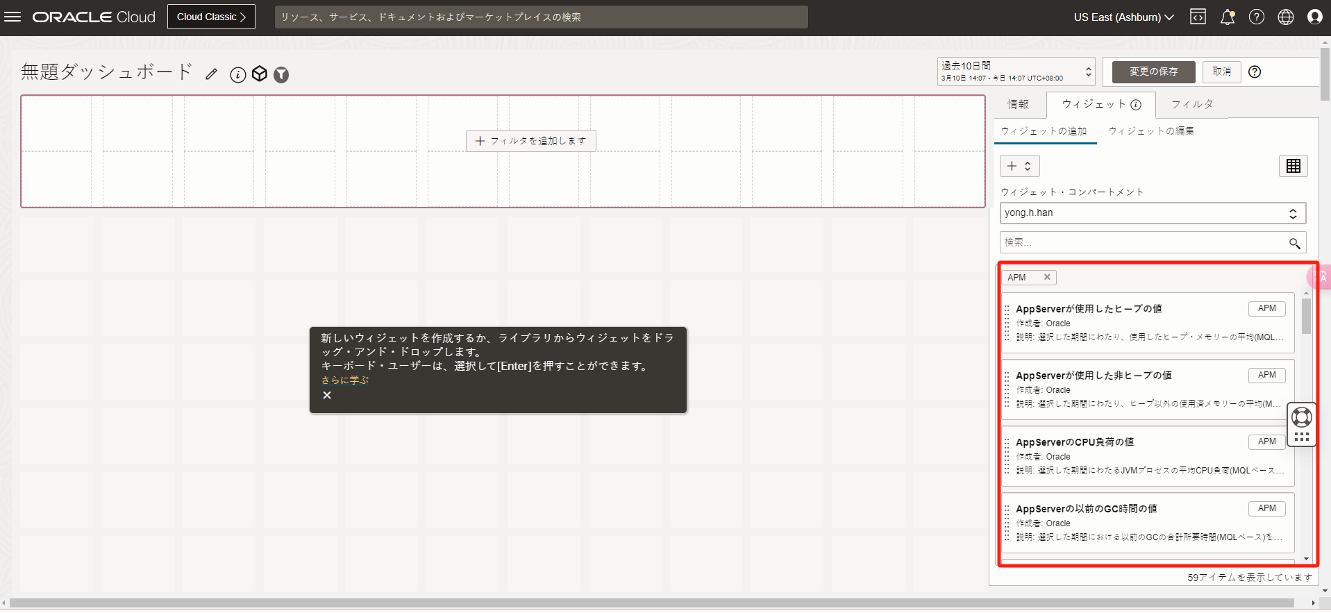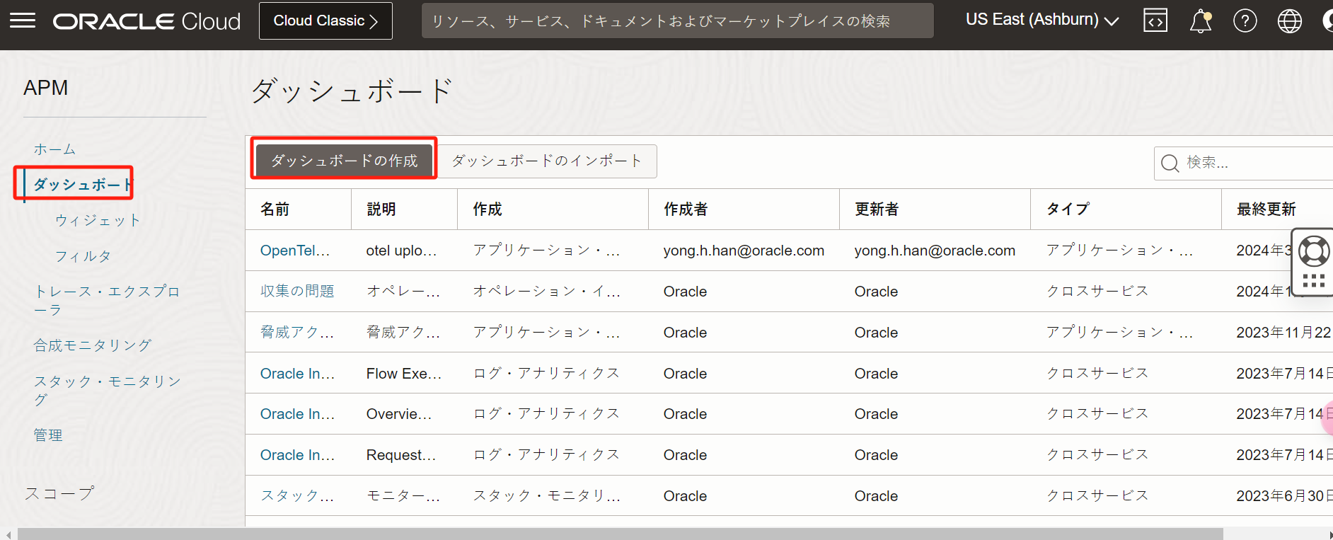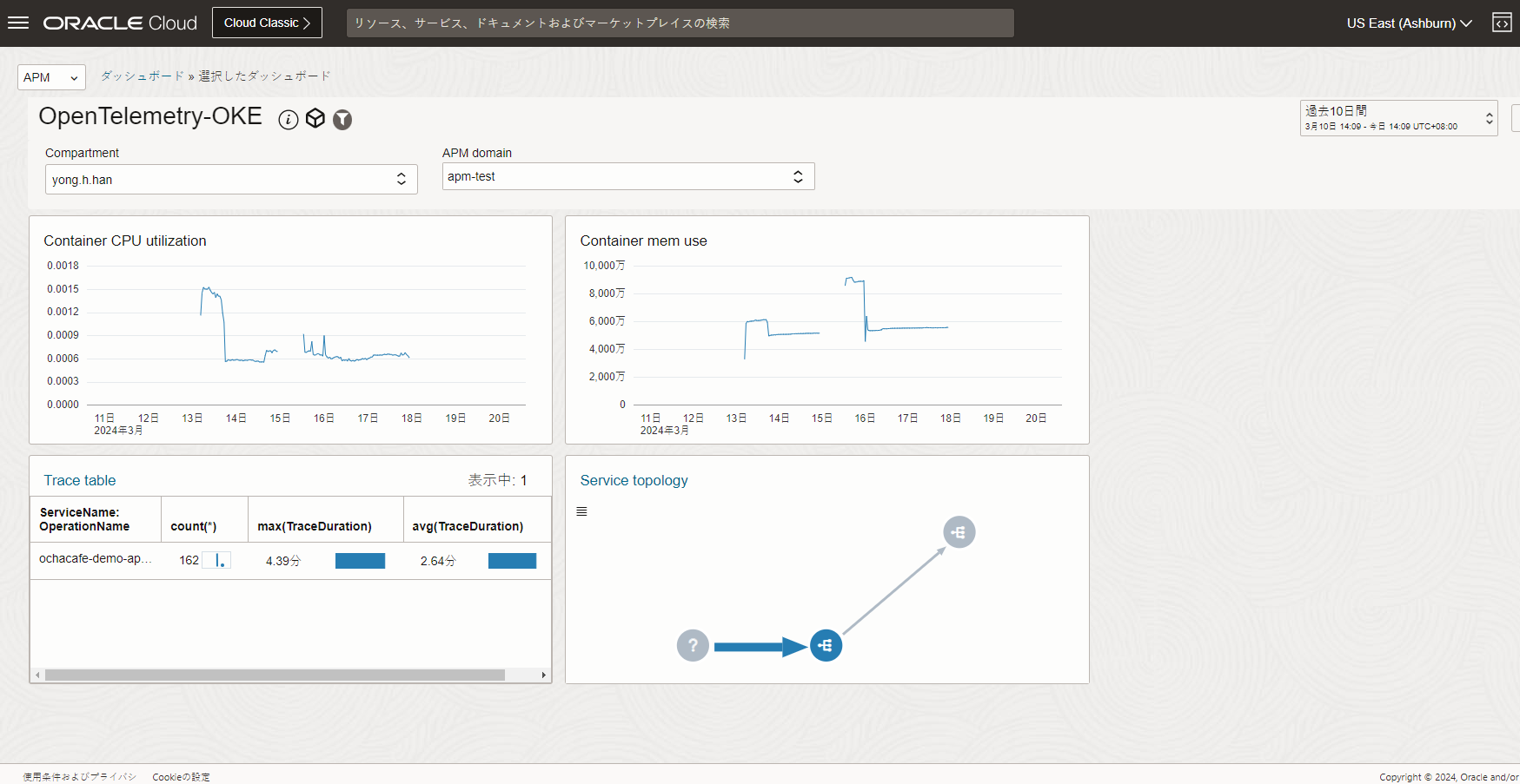 APMドメインのプルダウンメニューから「oke-handson-apm」を選択します。