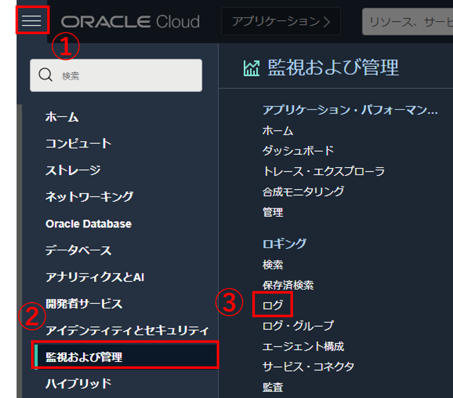 - Oracle Cloud Infrastructure Logging : 監査ログ、サービス・ログ、カスタム・ログに対応した、スケーラビリティの高いフルマネージド型のロギングサービスです。