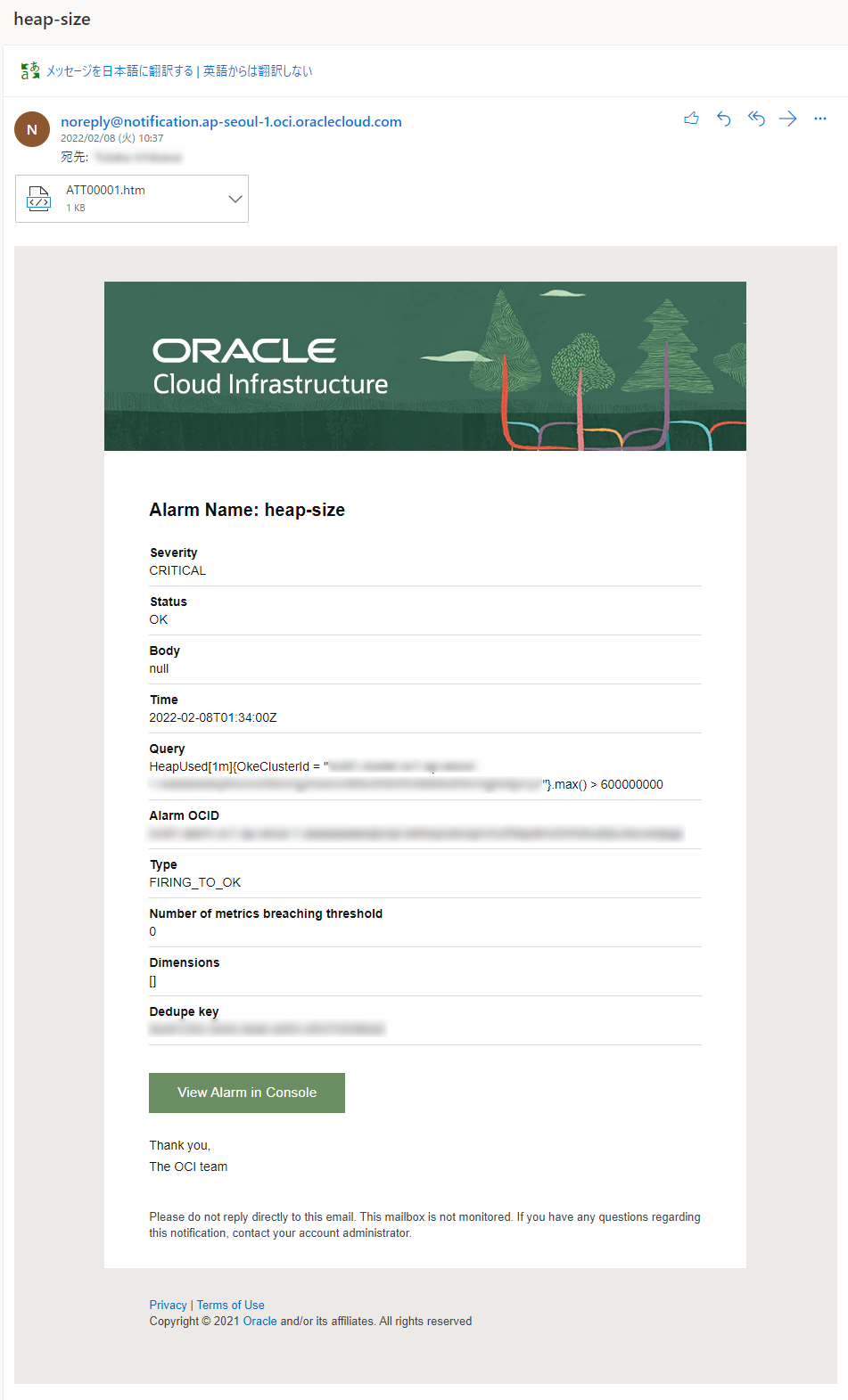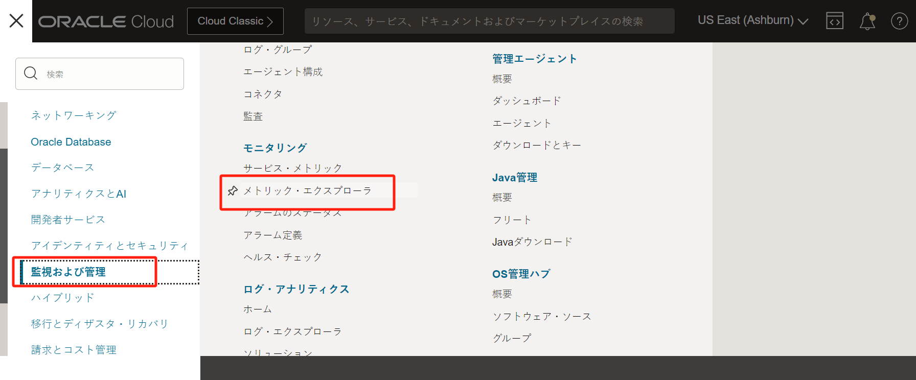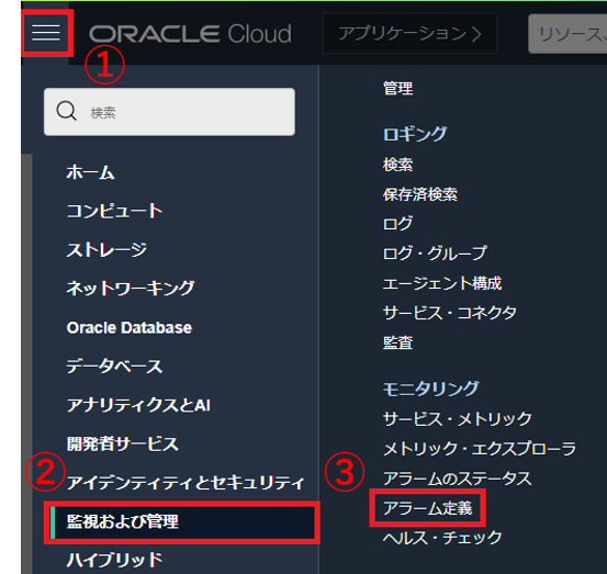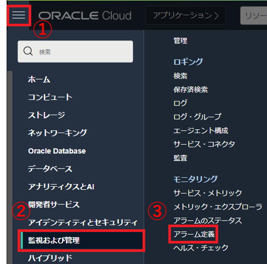 - Oracle Cloud Infrastructure Monitoring : メトリックおよびアラーム機能を使用してクラウド・リソースを積極的および受動的にモニター可能なフルマネージドサービスです。