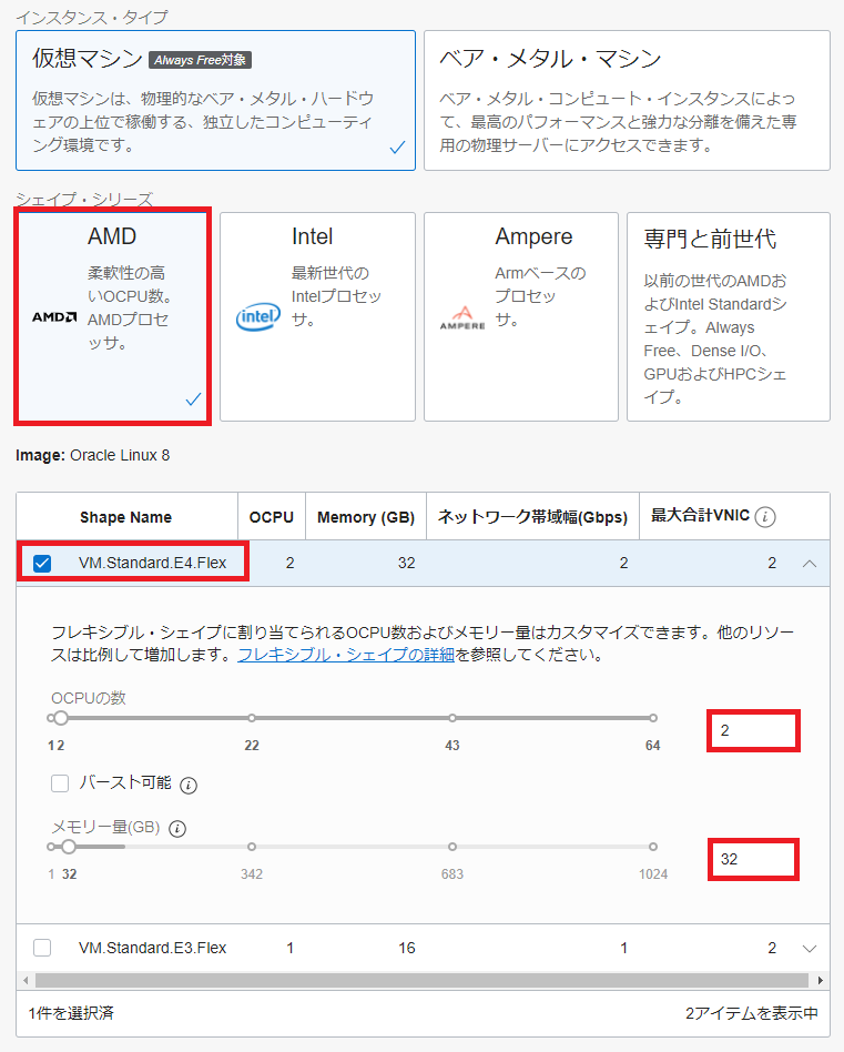 | シェイプ | VM Standard.E3.Flex |