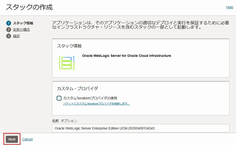 最初の スタック情報 の画面はそのまま「Next」をクリックします。
