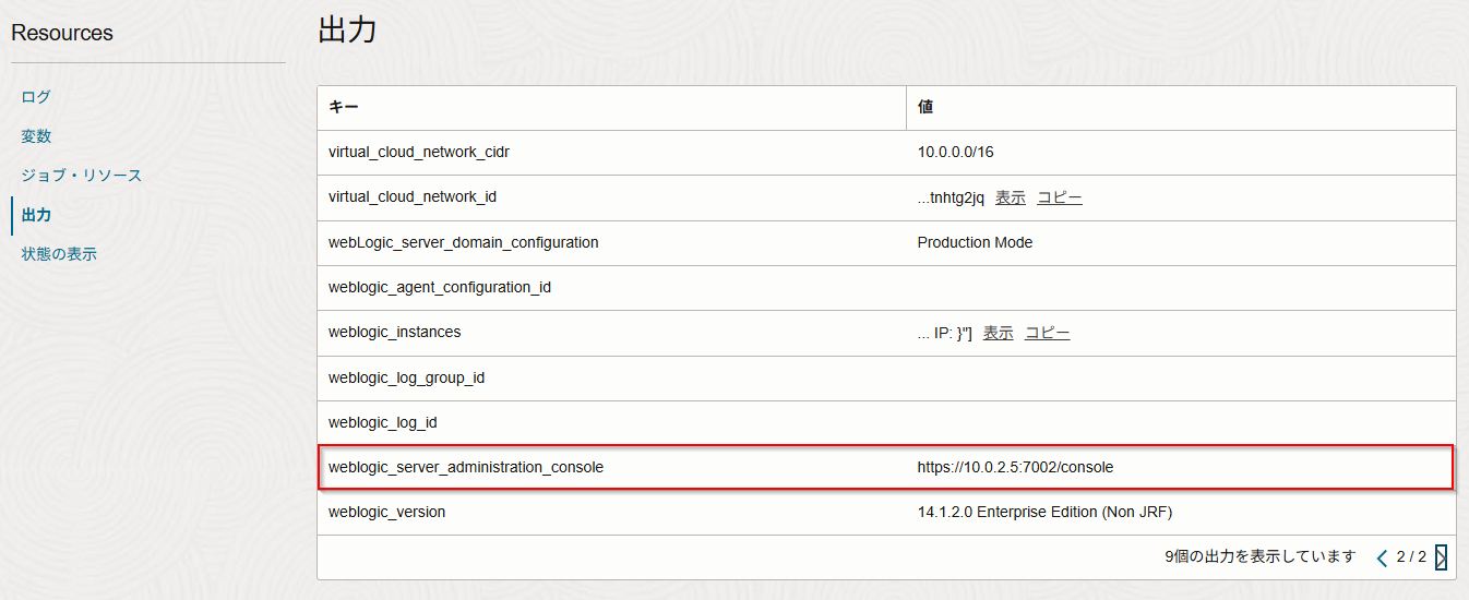 {private ip}はプロビジョニングした後のジョブで出力されたweblogic_server_administration_consoleのIPアドレス部分の値です。