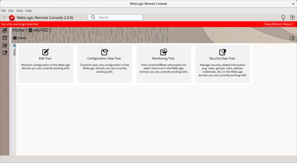 Oracle WebLogic Remote Consoleは、Oracle WebLogic Serverドメインを管理するグラフィカル・ユーザー・インタフェースです。