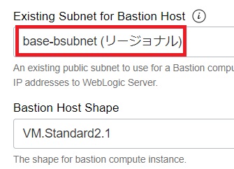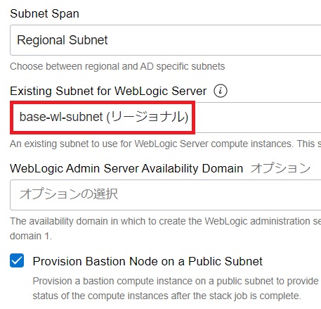 Existing Subnet for WebLogic Serverは「base-wl-subnet」を選択します。