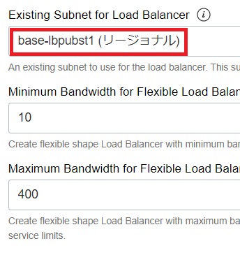 Existing Subnet for Load Balancerは「base-lbpubst1」を選択します。