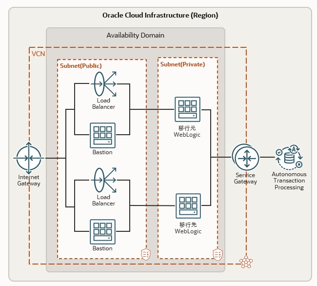 - 移行先環境となるWebLogic Server for OCIを移行元環境と同一サブネットに作成