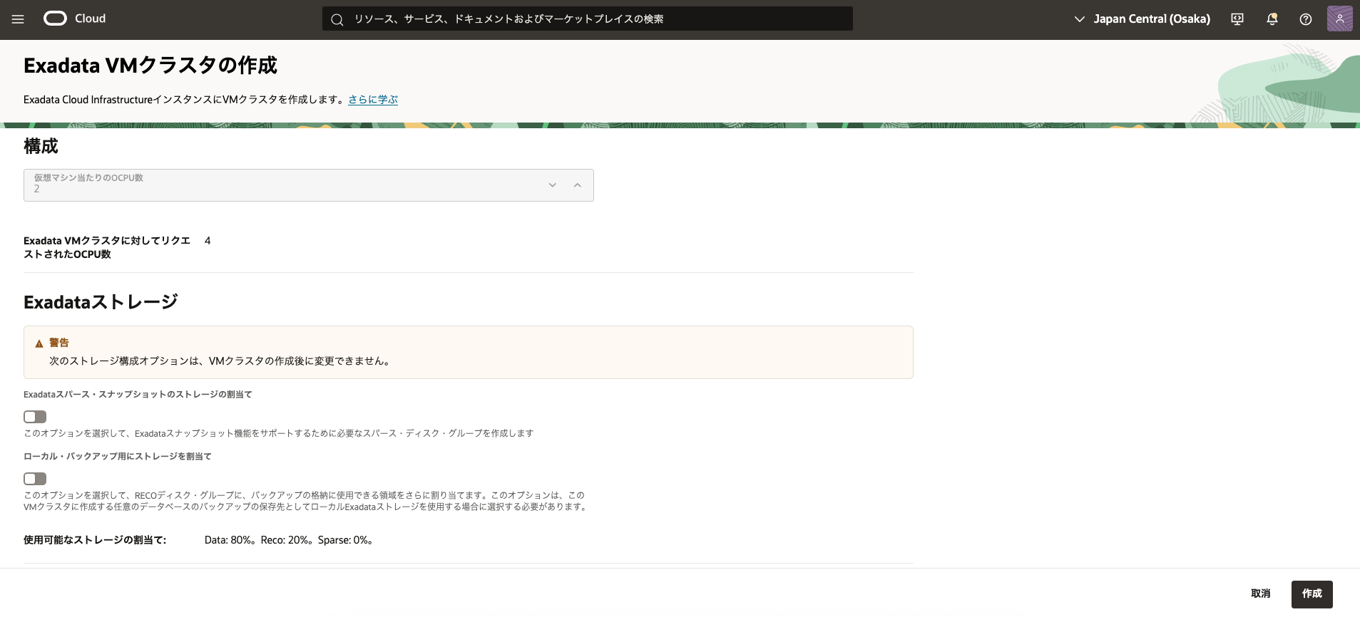 - Exadata VM クラスタの作成 をクリックします。