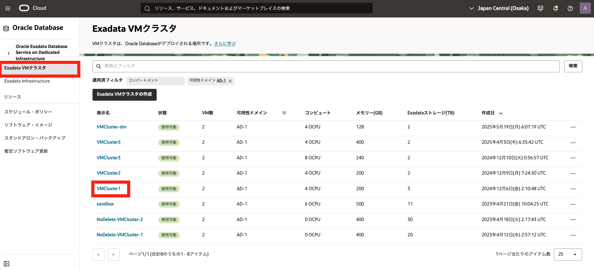- 2. Exadata VM クラスタの作成で作成したExadata VM クラスタの表示名をクリックします。
