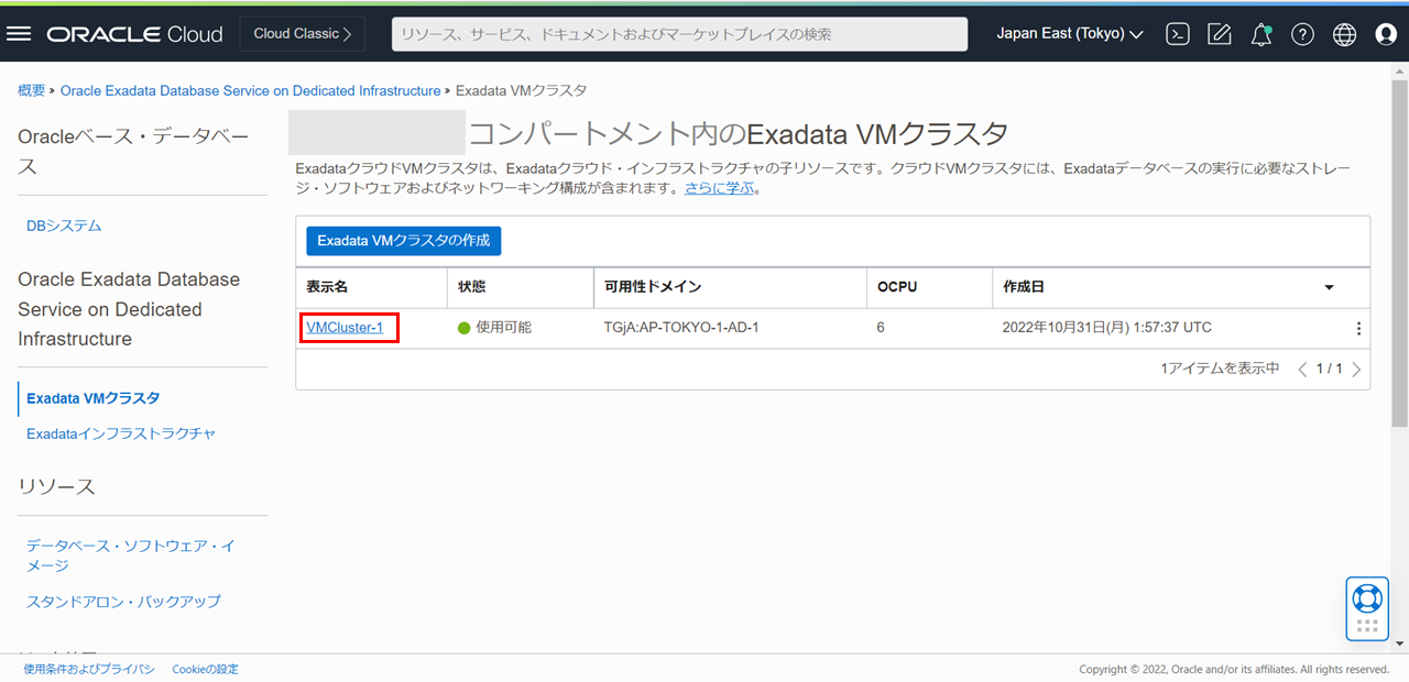 操作したいExadata VM クラスタの表示名をクリックします。