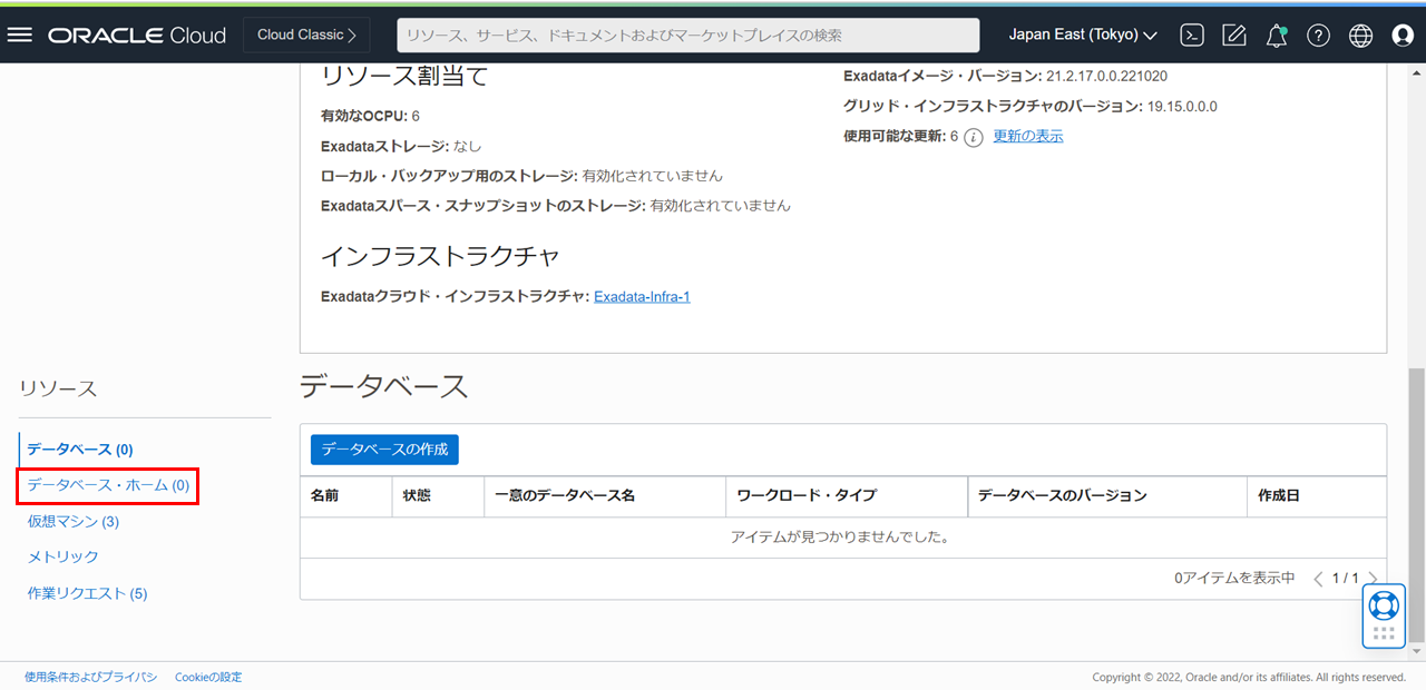 リソースの一覧からデータベース・ホームをクリックします。