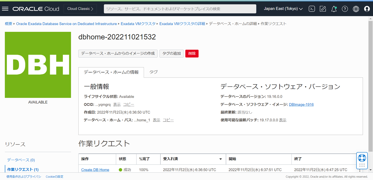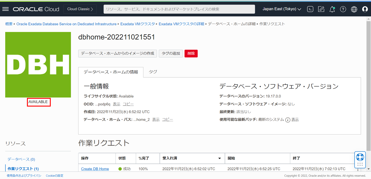 データベース・ホームの状態がPROVISIONINGからAVAILABLEに変更されたら完了です。